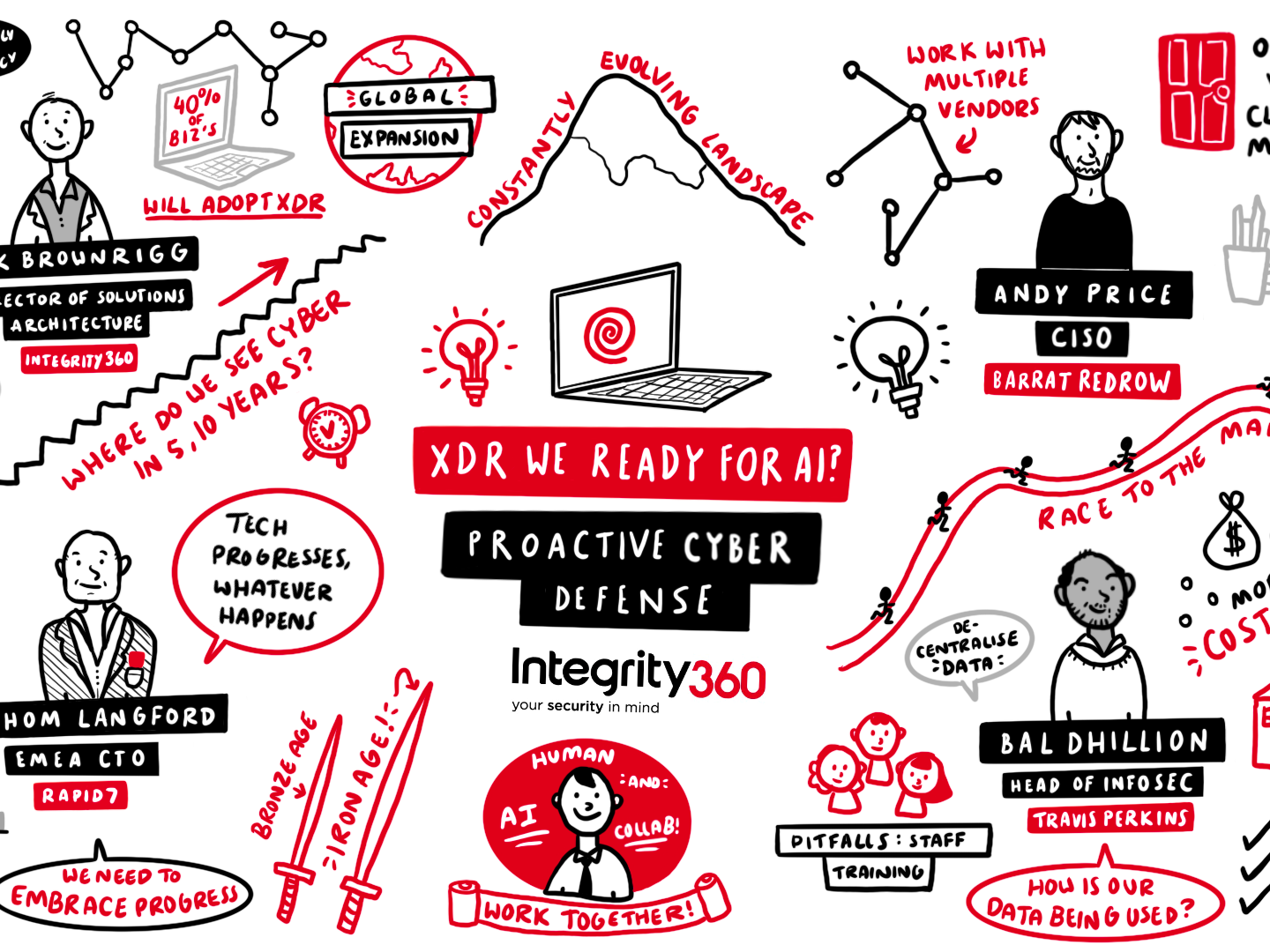 Graphic recording of Integrity360's 'XDR We Ready for AI?' panel discussion